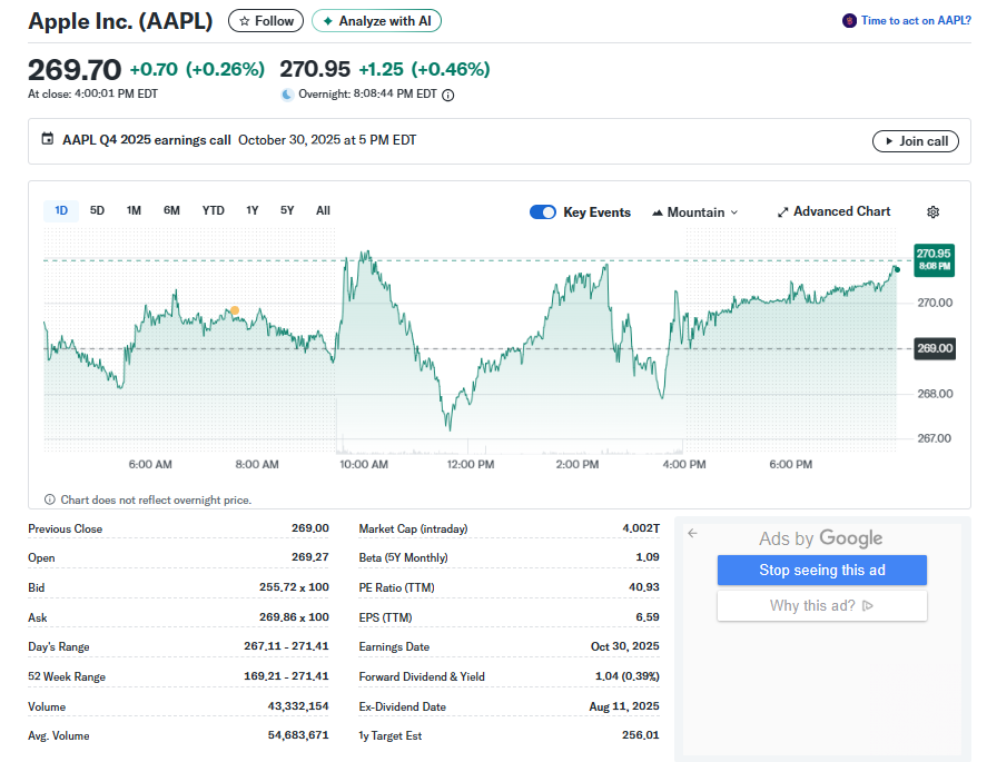 BetaHow much the stock moves compared to the overall market.1.0 = average. Below 1 = stable. Above 1 = more up-and-down movement.